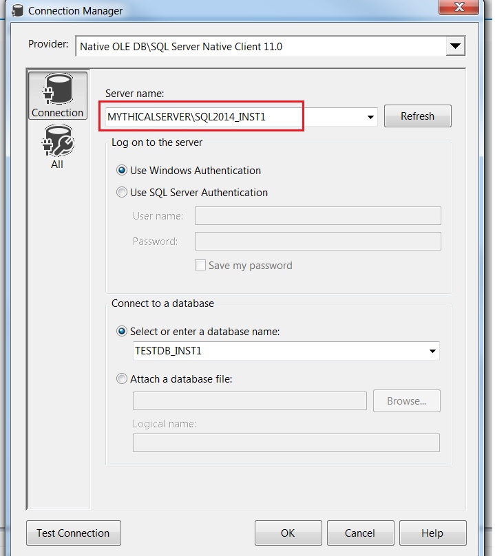 Of course, these connections are effectively hard-coded. Unless a method is implemented to change these, then it will always have to be the same input file, in the same location, copying data to the same table on the same database within the same server.