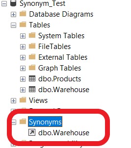 CREATE SYNONYM Warehouse FOR Synoym_Target.dbo.Synonym_Warehouse;