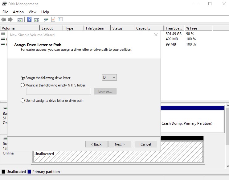 The next step is to use Windows Disk management tool, to allocated the new drive.