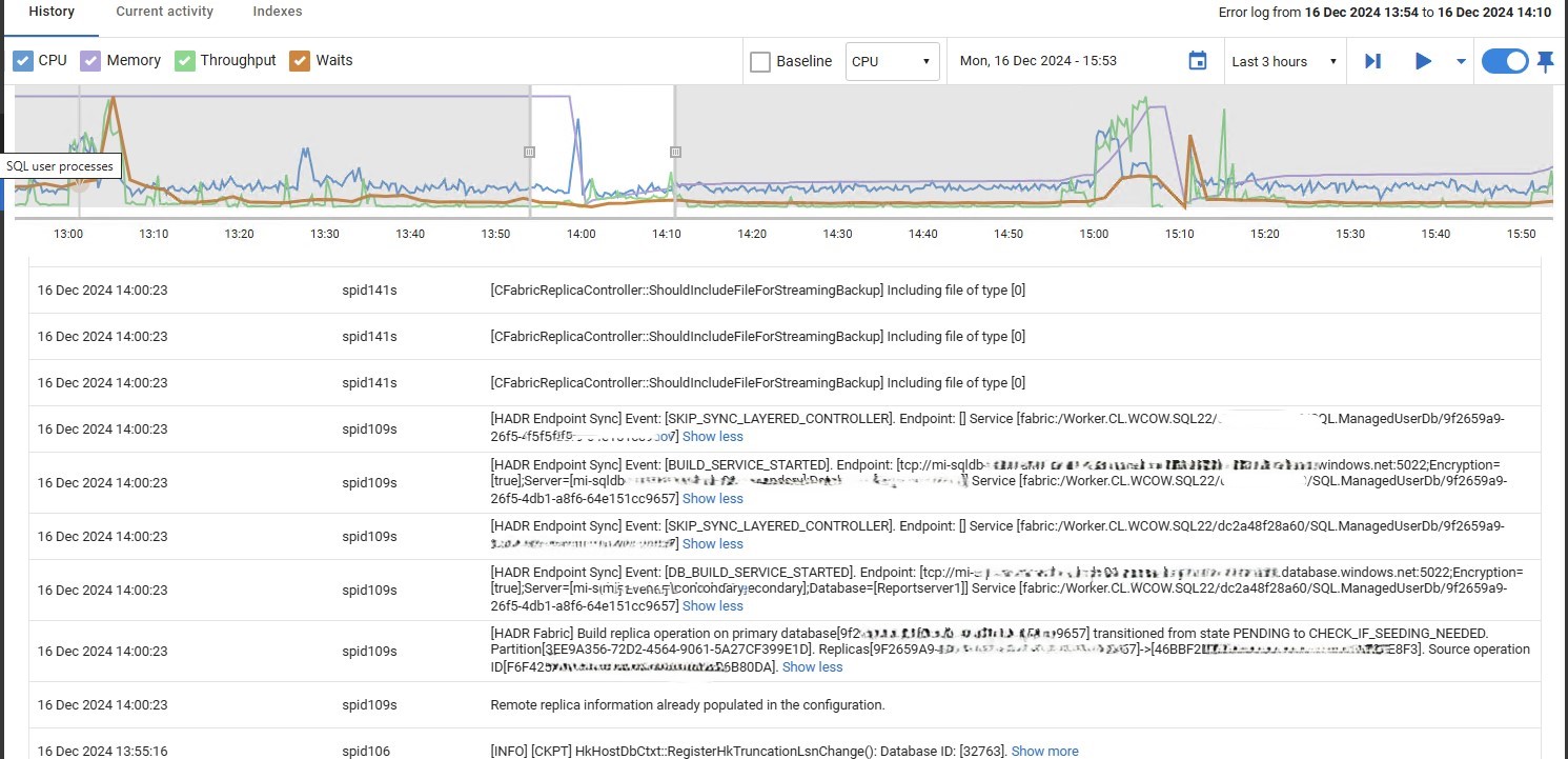Another ‘feature’ of Azure Managed Instance, is that after a restart, the old error logs aren’t available – so you can’t see anything from that, that might help investigate the cause of the instance failure.